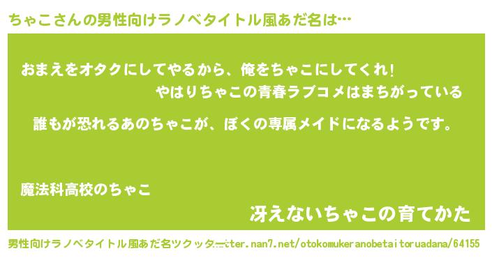 | 意味不明あだ名 | 『永久保存ちゃこ』『ちゃこフォーエバー』 |