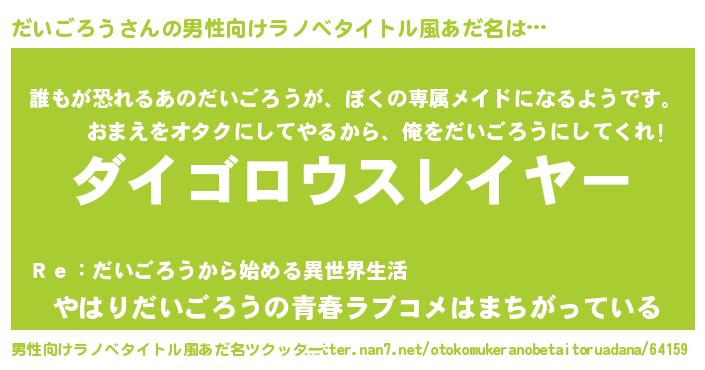 | ヘコむあだ名 | 『だいごろう(爆)』『酢こんぶ』 |