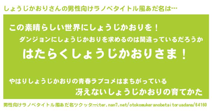 | 肩書あだ名 | 『しょうじかおりディレクター』 |
