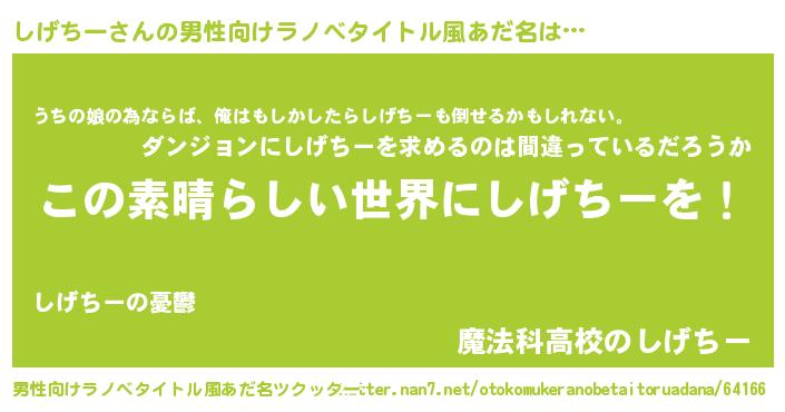 しげちーさんの男性向けラノベタイトル風あだ名をツクッター!