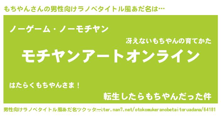 | 女子向けラノベタイトル風あだ名 | 『もちやん姫と円卓の騎士』 |