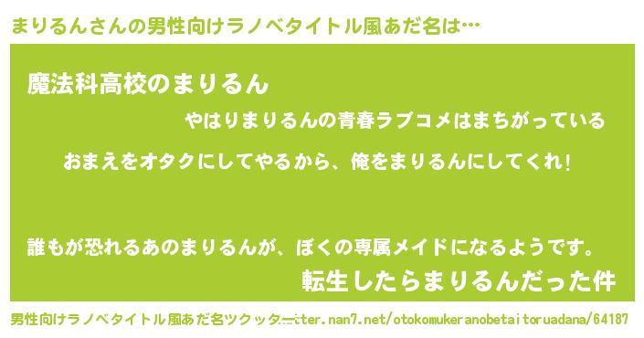 | 胡散臭い通販商品みたいなあだ名 | 『100人中100人が認めたマグネット磁石…その名も「まりるん」』 |