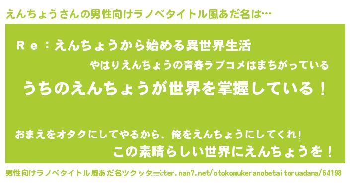 | 意味不明あだ名 | 『自称えんちょう』『ペロリンえんちょう』 |