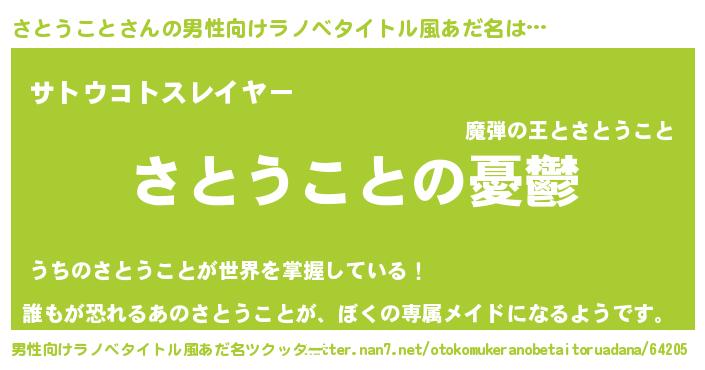 | 女子向けラノベタイトル風あだ名 | 『(仮)さとうことのやんごとなき事情』 |
