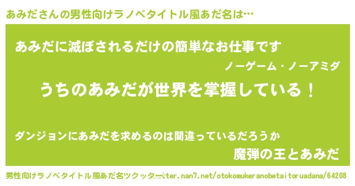 | ヒーロー風カッコイイあだ名 | 『仮面アミダー』『慈愛の使者あみだ』 |