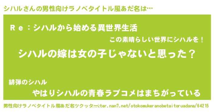 | 女子向けラノベタイトル風あだ名 | 『シハル様がみてる』『闇のシハル』 |