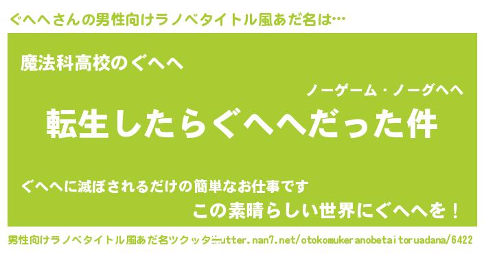 | ヒーロー風カッコイイあだ名 | 『サイバー戦士グヘヘ』『仮面グヘダー』 |