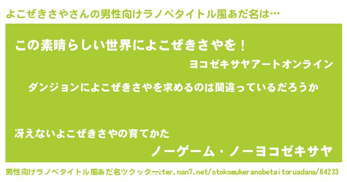 | 女子向けラノベタイトル風あだ名 | 『よこぜきさやは平凡を望む』 |