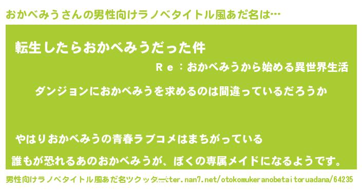 | 意味不明あだ名 | 『とにかく怪しいおかべみう』 |