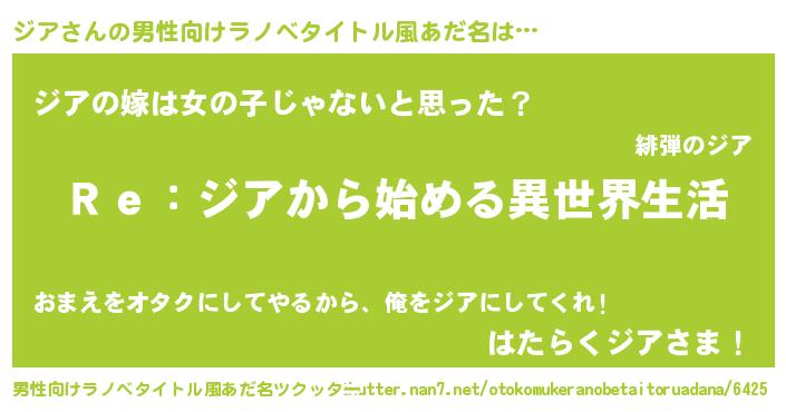 | ヒーロー風カッコイイあだ名 | 『サイバー戦士ジア』『魔戒騎士ジア』 |