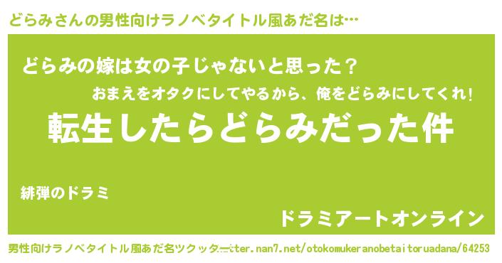 | ヘコむあだ名 | 『どらっちょ』『どらもー』 |