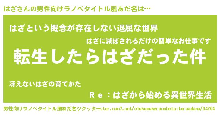 | 胡散臭い通販商品みたいなあだ名 | 『来世でも幸せになれる健康食品…その名も「はざ」』 |