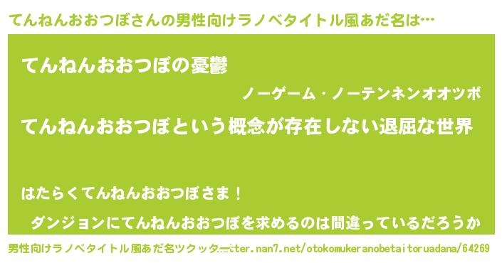 | 女子向けラノベタイトル風あだ名 | 『異世界で失敗しない100のてんねんおおつぼ』 |