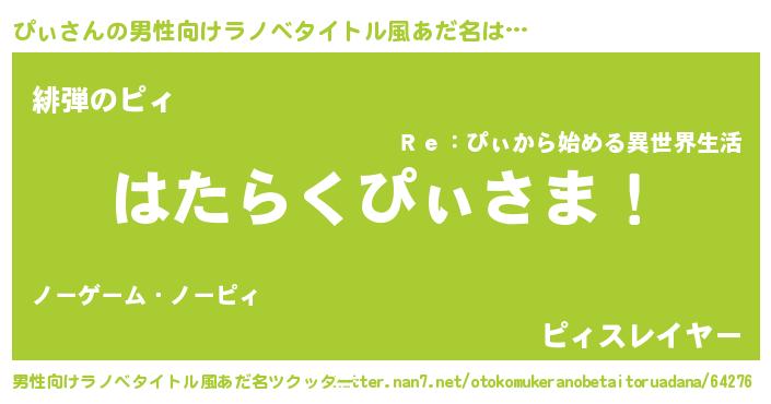 | 胡散臭い通販商品みたいなあだ名 | 『ガンによく効く冬虫夏草…その名も「ぴぃ」』 |