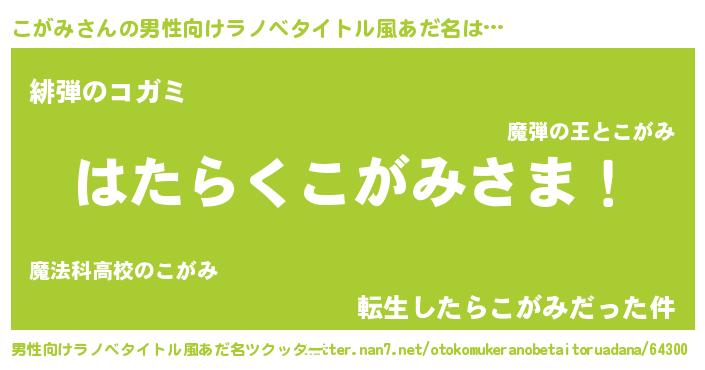 | 意味不明あだ名 | 『めかぶ科こがみ属』『自称こがみ』 |
