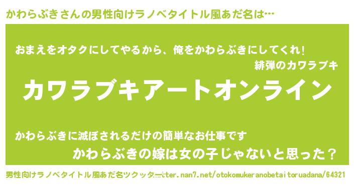 | ヒーロー風カッコイイあだ名 | 『スーパーカワラブキ』『幻影騎士カワ』 |