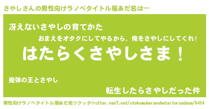 | 意味不明あだ名 | 『めかぶ科さやし属』『自称さやし』 |