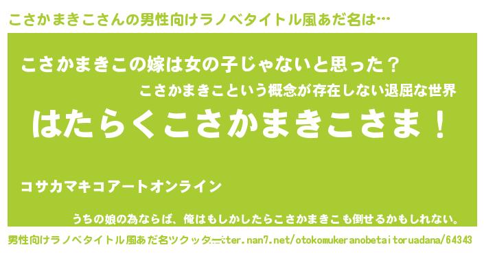 | 意味不明あだ名 | 『とにかく怪しいこさかまきこ』 |