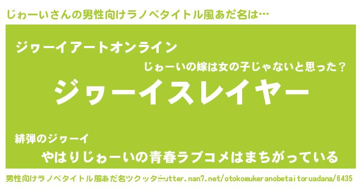 | 胡散臭い通販商品みたいなあだ名 | 『必ず成功する水晶球…その名も「じゎーい」』 |