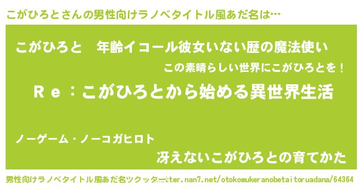 | 女子向けラノベタイトル風あだ名 | 『闇のこがひろと』 |