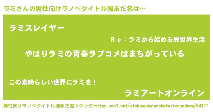 | 女子向けラノベタイトル風あだ名 | 『ラミ伯爵の花嫁』『闇のラミ』 |