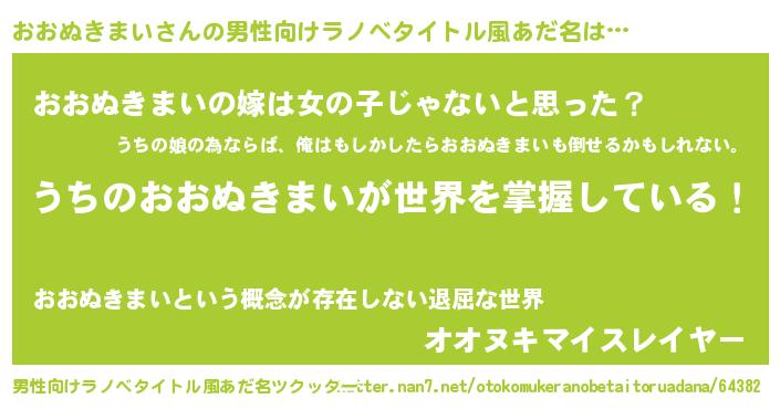 | 胡散臭い通販商品みたいなあだ名 | 『全米が絶賛したサプリメント…その名も「おおぬきまい」』 |