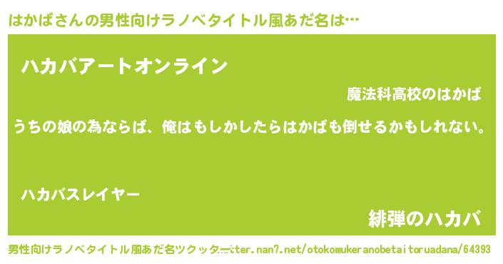 | ヒーロー風カッコイイあだ名 | 『ウルトラはかばマン』『スーパーハカバ』 |