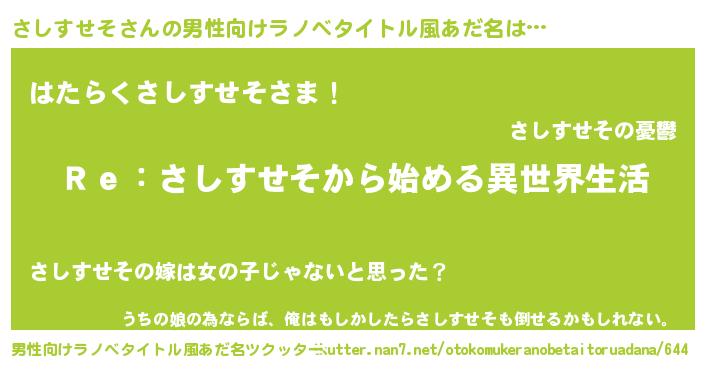 | ヒーロー風カッコイイあだ名 | 『最強戦士サシスセソ』『幻影騎士サシ』 |