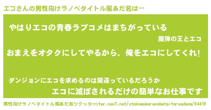 | ヒーロー風カッコイイあだ名 | 『愛の使者エコ』『ウルトラエコマン』 |