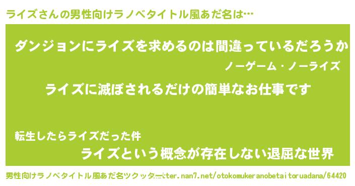 | ヘコむあだ名 | 『ライっちょ』『ライズ(苦笑)』 |