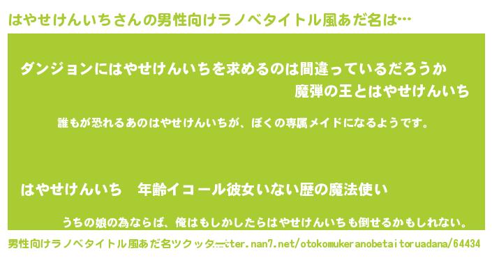 | ヘコむあだ名 | 『はやせけんいち(小並感)』『はやお』 |