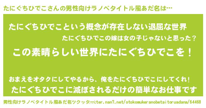 | 意味不明あだ名 | 『住所不定無職たにぐちひでこ(6歳)』 |