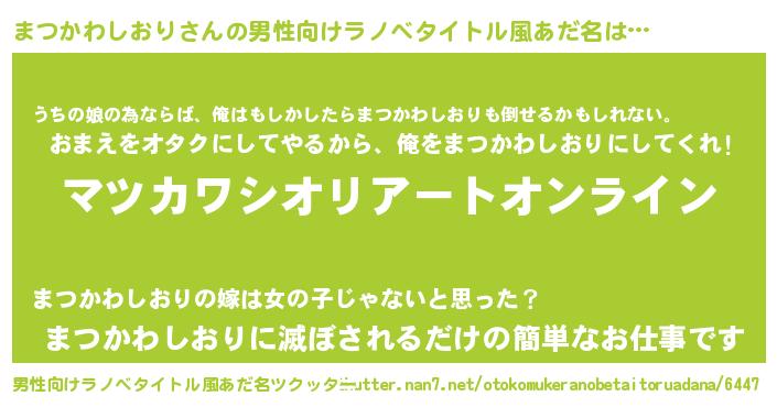 | 胡散臭い通販商品みたいなあだ名 | 『億万長者になれるブレスレット…その名も「まつかわしおり」』 |