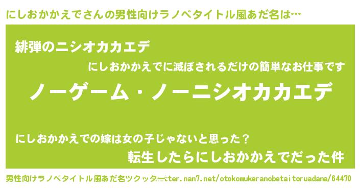 | 胡散臭い通販商品みたいなあだ名 | 『モンドセレクションを受賞したイリジウム磁石…その名も「にしおかかえで」』 |