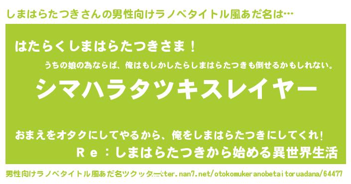 | 肩書あだ名 | 『しまはらたつき大将』 |