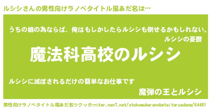 | 女子向けラノベタイトル風あだ名 | 『ルシシなんてお断りですっ。』 |