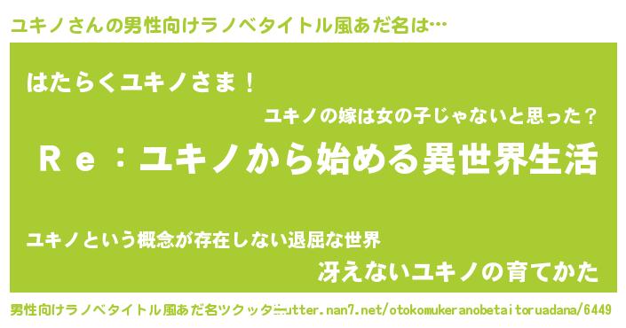 | 意味不明あだ名 | 『自称ユキノ』『とにかく怪しいユキノ』 |