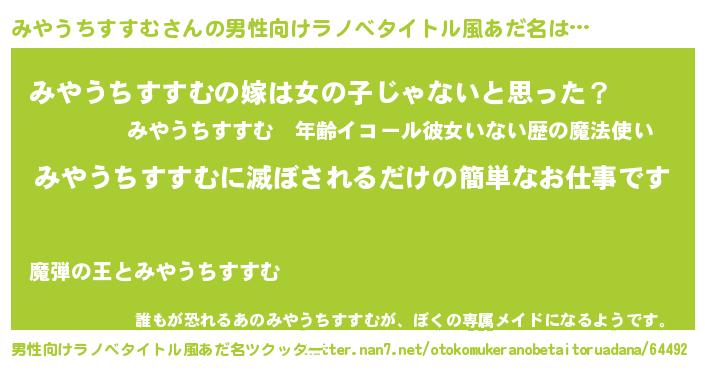 | ヘコむあだ名 | 『みやお』『みやうちすすむ(苦笑)』 |