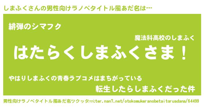 | 胡散臭い通販商品みたいなあだ名 | 『ガンによく効くアガリクス…その名も「しまふく」』 |