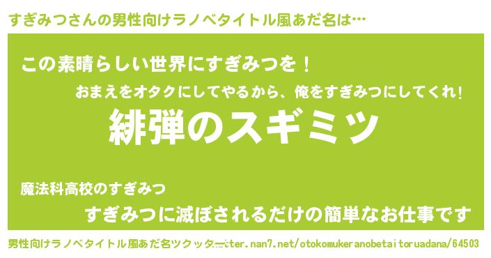 | 意味不明あだ名 | 『住所不定無職すぎみつ(62歳)』 |