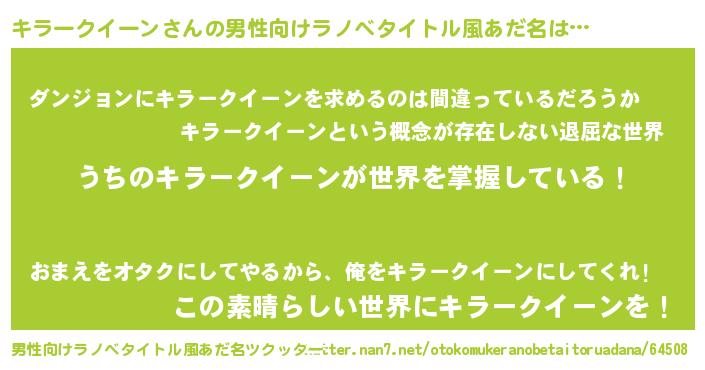 | ヘコむあだ名 | 『キラっぺ』『キラークイーン(遠い目)』 |