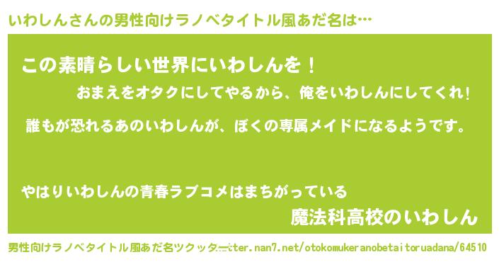 | 意味不明あだ名 | 『永久保存いわしん』『自称いわしん』 |