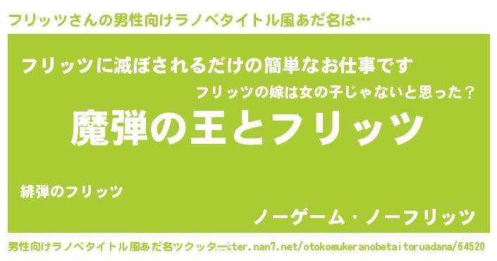 フリッツさんの男性向けラノベタイトル風あだ名をツクッター!