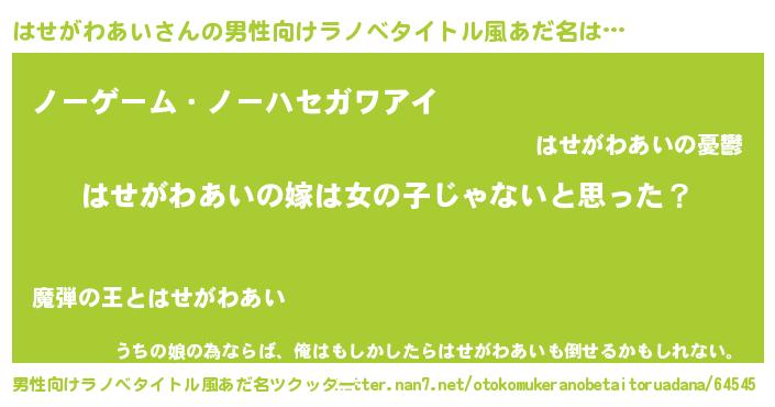 | 女子向けラノベタイトル風あだ名 | 『はせがわあいの卵を拾いまして』 |