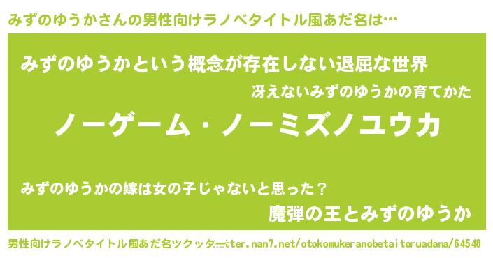 | ヘコむあだ名 | 『みずのゆうか(苦笑)』『みずを』 |