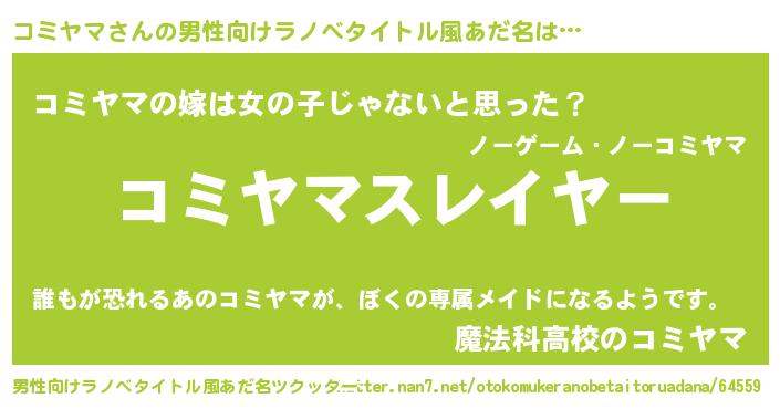 | 胡散臭い通販商品みたいなあだ名 | 『信頼と実績のサプリメント…その名も「コミヤマ」』 |