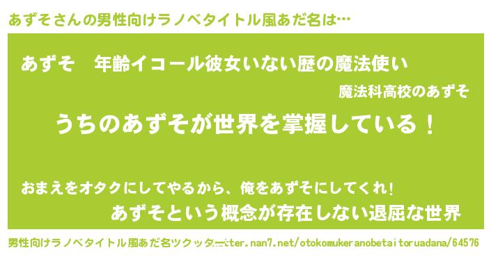 | ヒーロー風カッコイイあだ名 | 『ネオアズソ』『究極戦士アズソ』 |