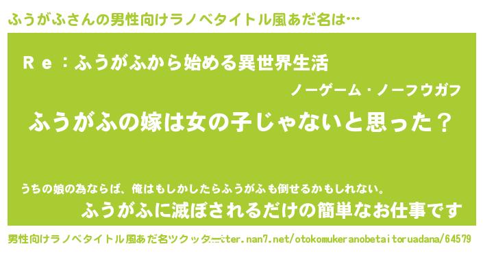 | 女子向けラノベタイトル風あだ名 | 『ふうがふ様がみてる』 |