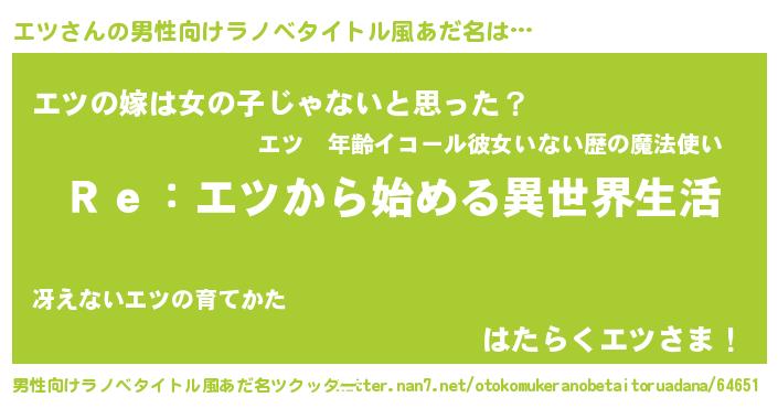 | 女子向けラノベタイトル風あだ名 | 『闇のエツ』『エツの卵を拾いまして』 |