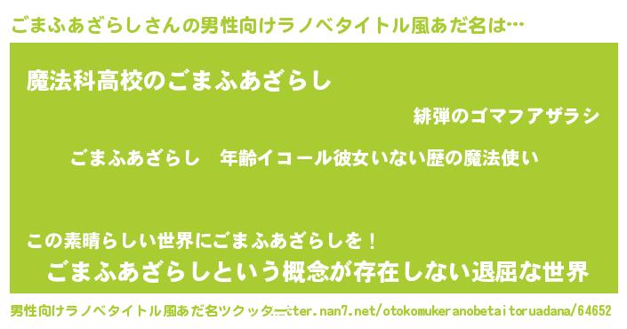 | 女子向けラノベタイトル風あだ名 | 『ごまふあざらしの玉の輿計画!』 |